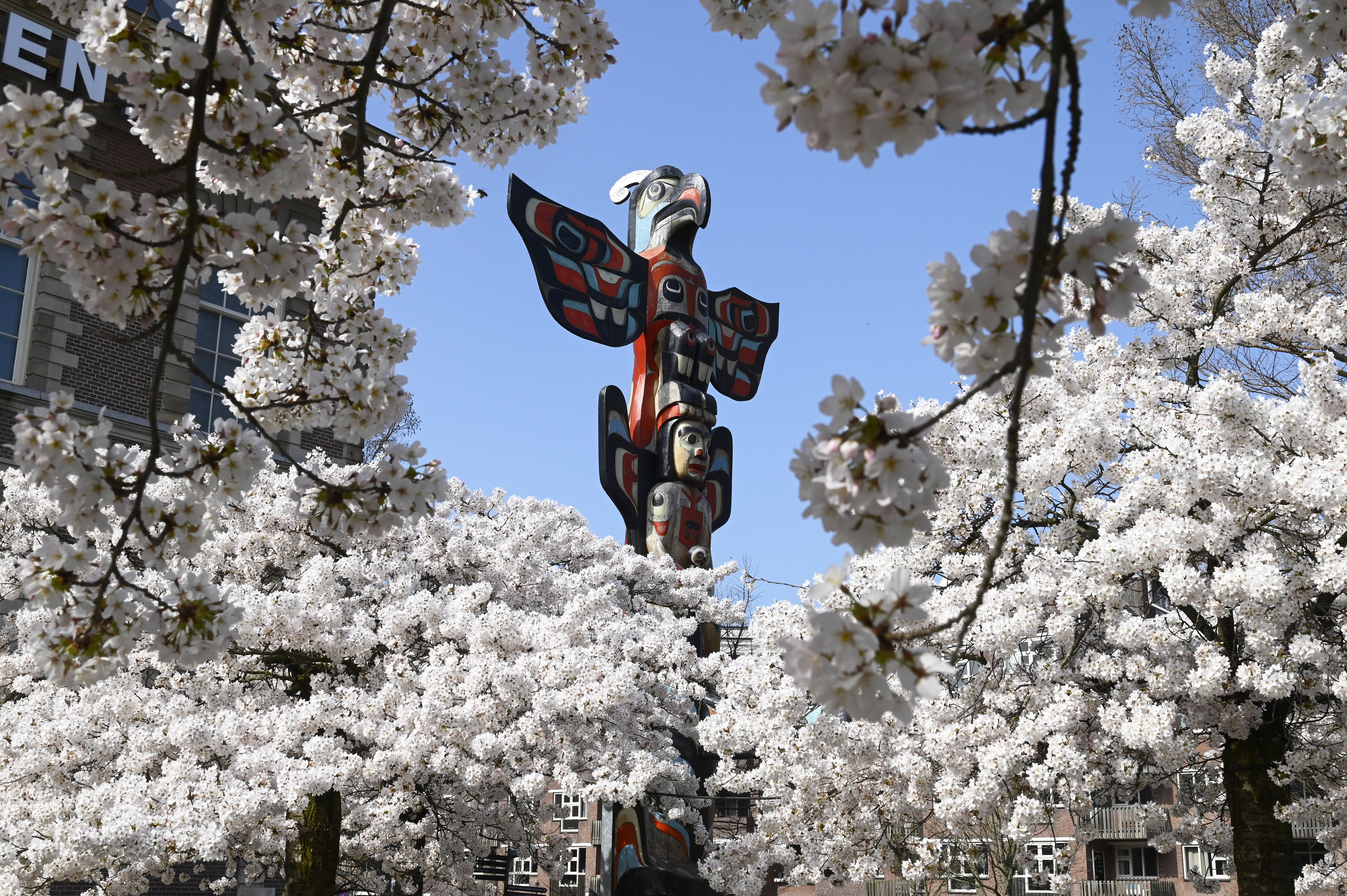 Cherry blossoms in bloom in front of the museum. Photo: Peter Hilz.
