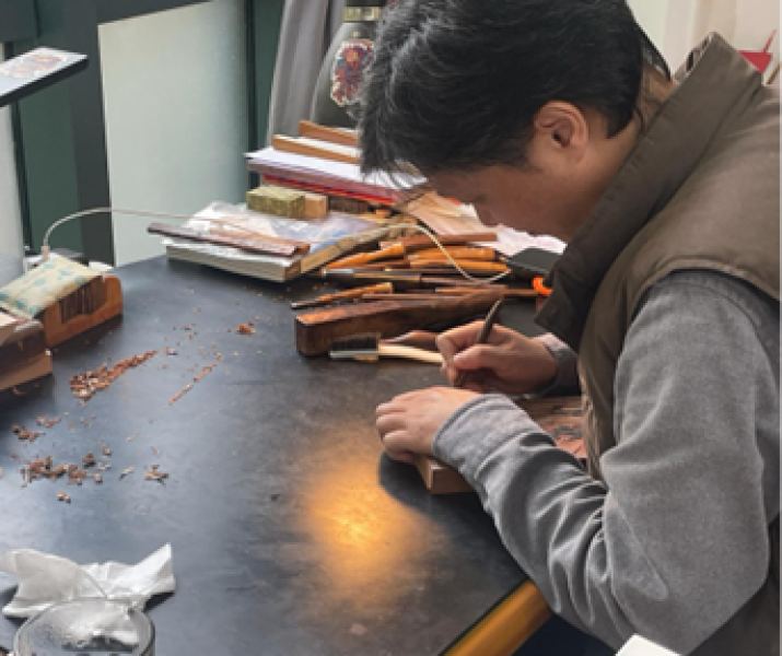 Eind 2023 bezocht een team van het Wereldmuseum Duoyunxuan in Shanghai, een befaamde kalligrafie- en schilderkunststudio die met houtblokdrukken exacte kopieën (facsimile’s) maakt van inktschilderingen. Het bezoek was onderdeel van een onderzoeksreis door China om makers en kunstenaars te interviewen, ter voorbereiding op de tentoonstelling Made in China
