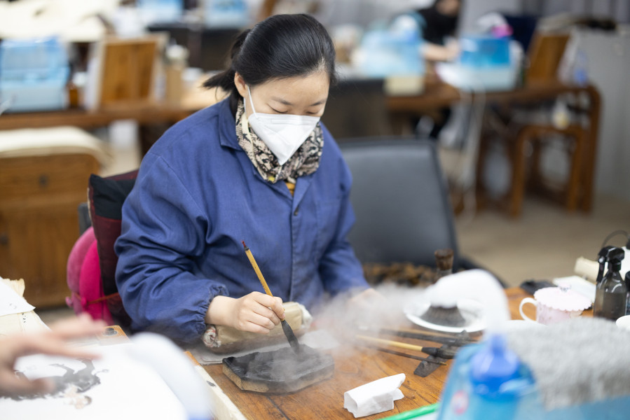 De kalligrafie- en schilderkunststudio Duoyunxuan was vroeger een dependance van Rongbaozhai, de Studio der Glorieuze Kostbaarheden (榮寶齋) in Beijing, een begrip in de Chinese kunstwereld. Alleen kunstenaars met een jarenlange ervaring kunnen de zogenaamde “geblokdrukte schilderingen” maken, muban shuiyin hua 木版水印畫. Shuiyin (watergedragen drukwerk) verwijst naar de vaardigheid van de maker om verschillende inktschakeringen te verkrijgen door de hoeveelheid water die op het drukblok én de afdruk wordt aangebracht te variëren. Voor een getrouwe afdruk van een inktschildering met delicate kleurschakeringen zijn soms honderden drukblokken nodig. De studio beschouwt zichzelf daarmee meer als maker van kunst dan als producent van reproducties.